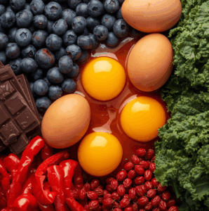 The best vitamins for our eye health are lutein, zeaxanthin, zinc, vitamin A, vitamin B1, vitamin C, vitamin E, and omega-3 fatty acids. These vitamins can reduce the risk of eye diseases as well as improve overall health. Foods such as blueberries, dark chocolate, eggs and egg yolks, kale, red bell peppers and goji berries are all full of the best vitamins, nutrients and minerals.